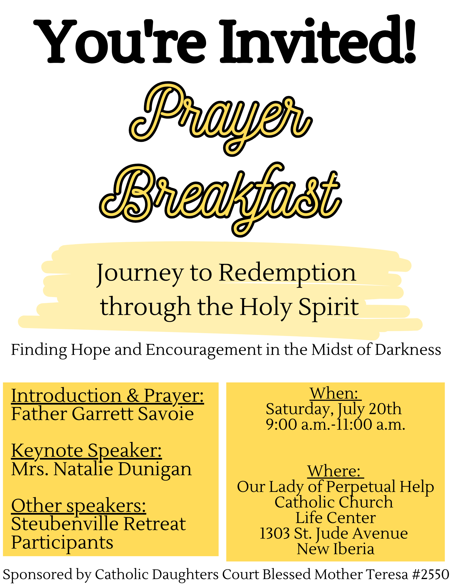 CDA Prayer Breakfast Jun 19, 2024 Jeri Mestayer Catholic Daughter Member since 2011 I have been a CDA Treasurer, CDA Recording Secretary, and CDA Vice Regent. I create the newsletters, edit the Facebook page, and edit the website.